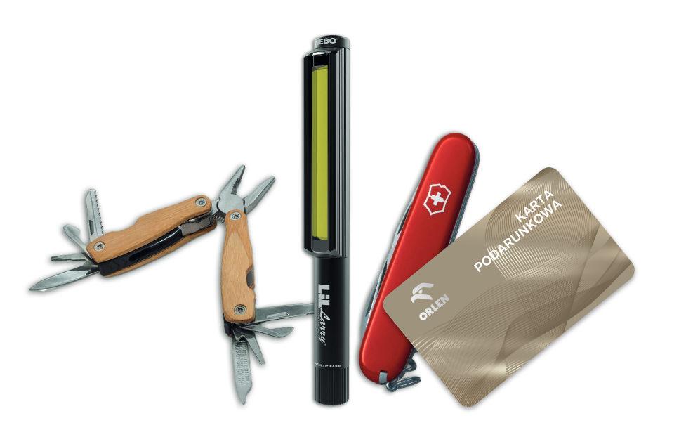 W programie czekają na Ciebie praktyczne i wartościowe nagrody przydatne na co dzień. Do wyboru masz niezawodny scyzoryk Victorinox, funkcjonalną latarkę NEBO lub wszechstronny multitool, które sprawdzą się w każdym gospodarstwie. Dodatkowo możesz zdobyć karty podarunkowe ORLEN o wartości 150 zł lub 300 zł. Wybierz nagrodę dla siebie i korzystaj z niej każdego dnia.